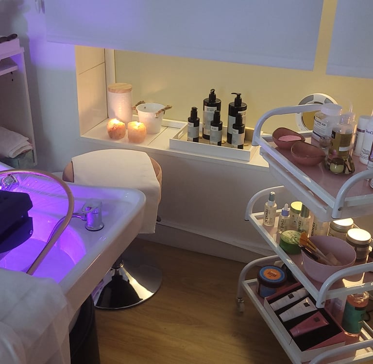 Tratamiento facial rejuvenecedor y head spa con chorros de agua .